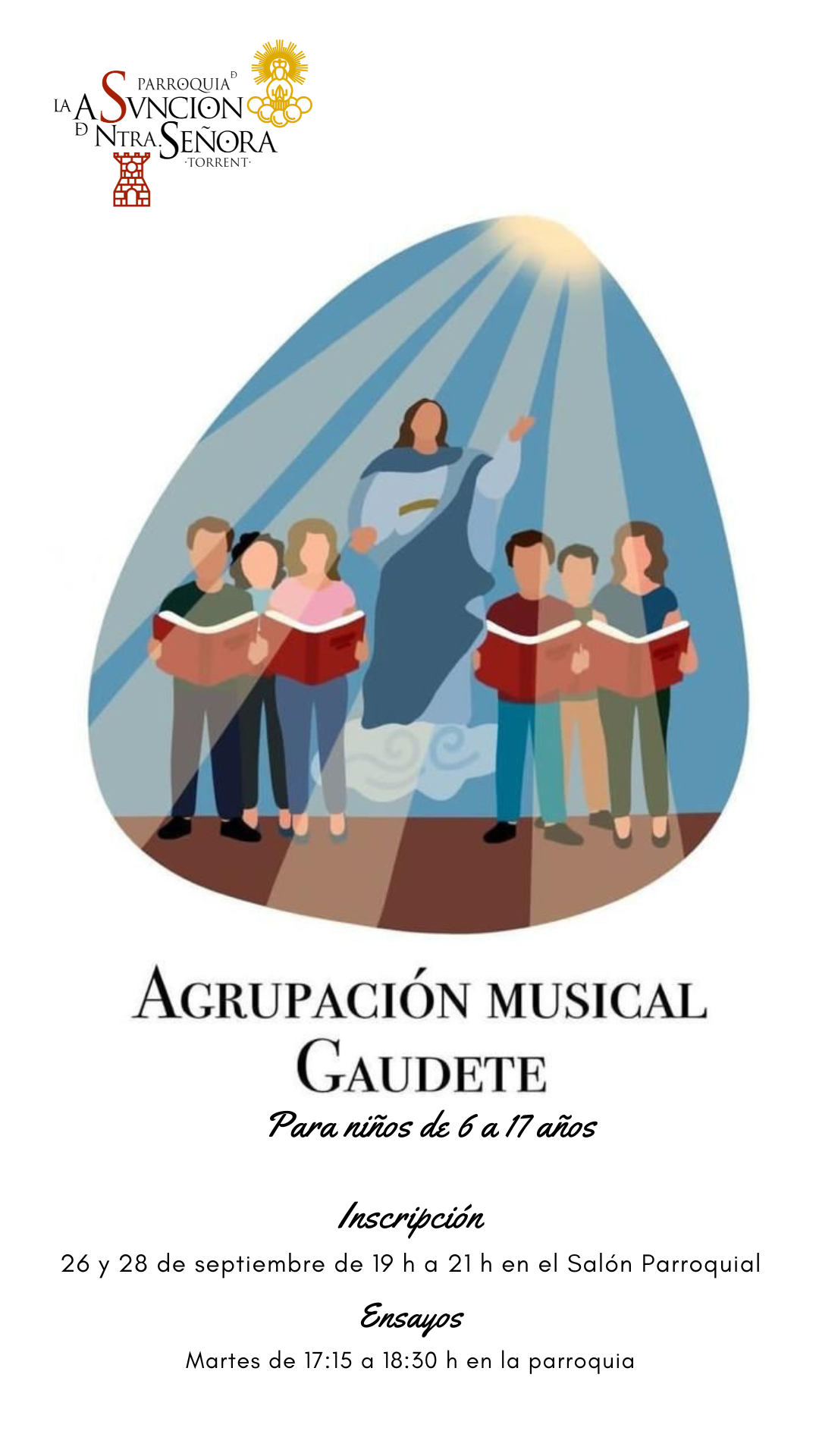Con gran alegría queremos anunciaros el nuevo proyecto que se ha puesto en marcha en nuestra parroquia: Agrupación musical “Gaudete”