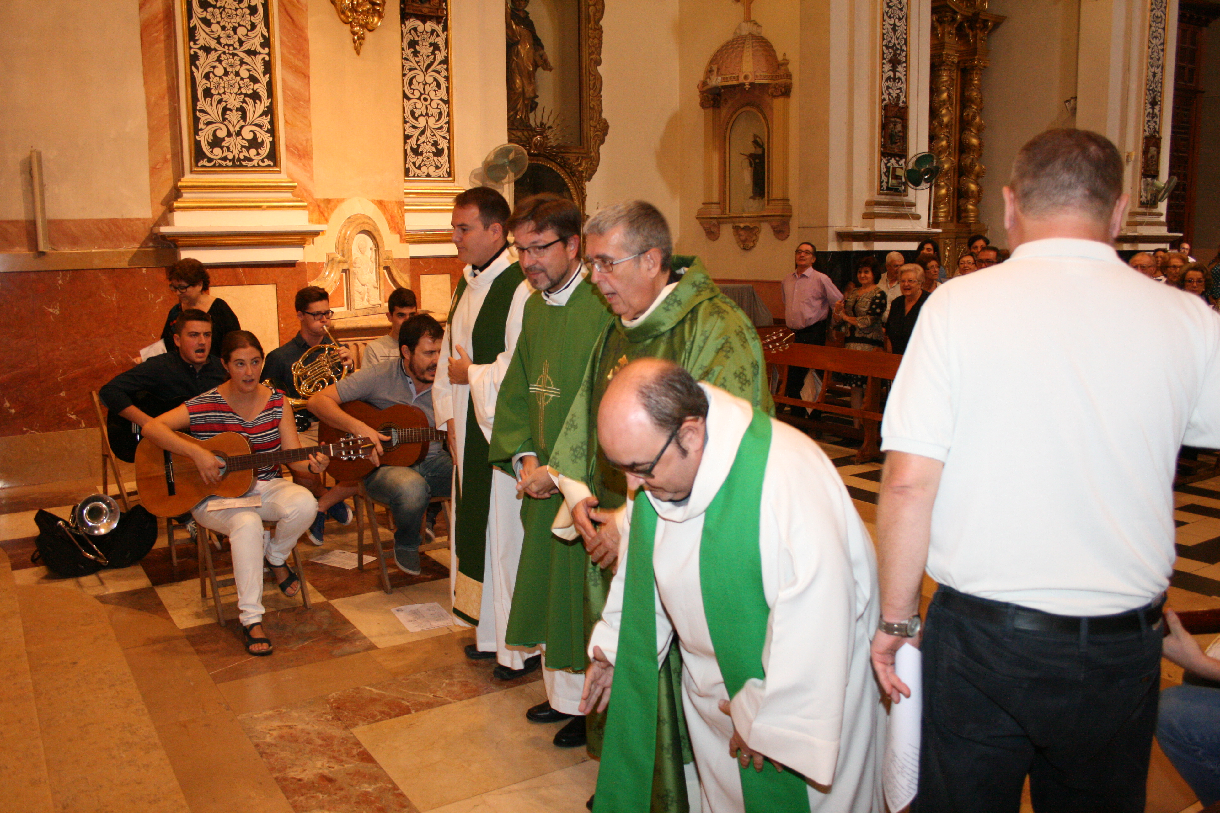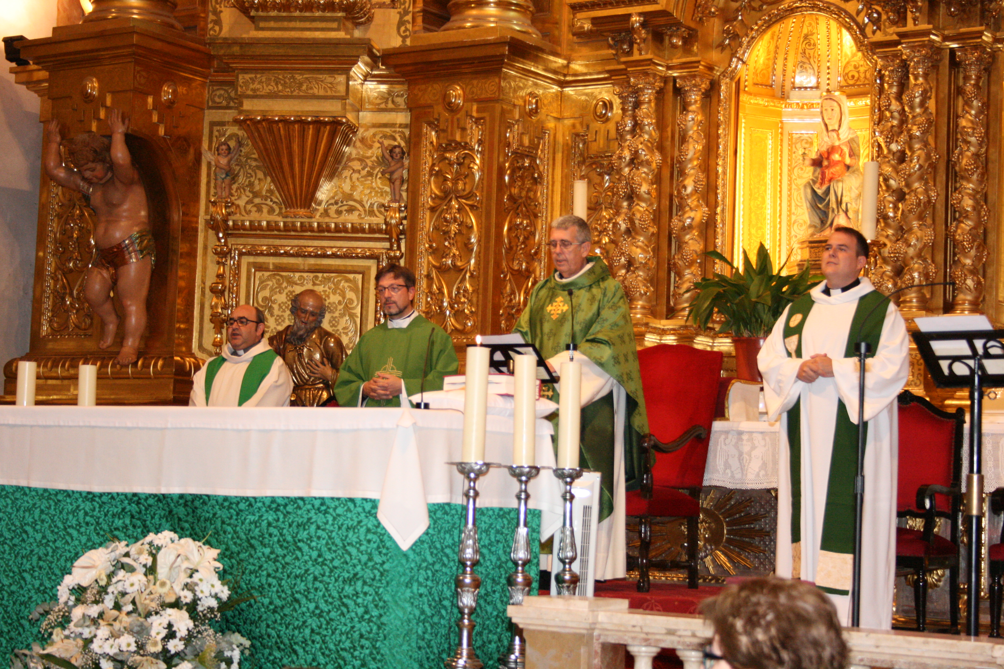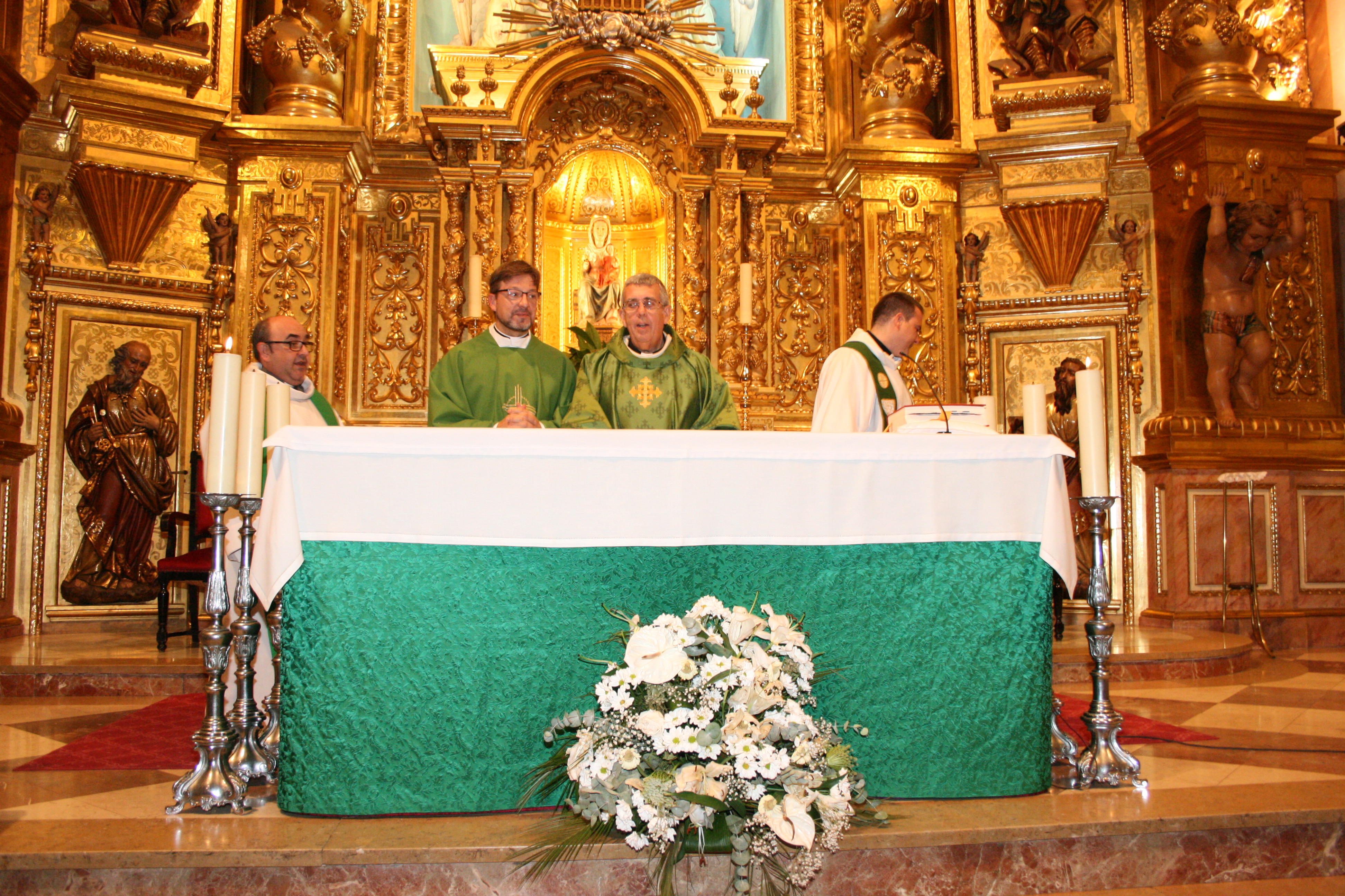 En la eucaristía ha tenido lugar la presentación a la comunidad parroquial del nuevo vicario, D. Jorge, que ha concelebrado junto a D. Juan José y D. Daniel, además de con D. Francisco Ballesteros, hijo de nuestra comunidad y párroco de la Purísima de Quart, donde ha estado D. Jorge en el último curso como diácono.
